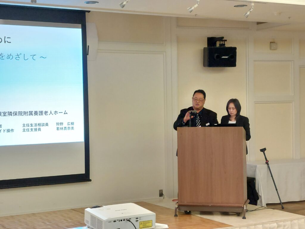 今年度の優秀賞施設は、養護老人ホーム長生園が受賞し、タイトルは「施設の中に町内会が出来た日~利用者・職員・地域が育む共助の福祉」という内容の発表でありました。