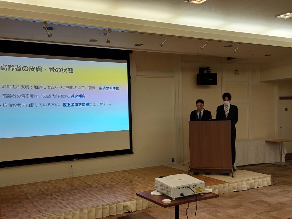 講演Ⅰでは、釧根地区老人福祉施設協議会の髙橋副会長(長生園・武佐の里園長)から、能登半島地震に伴うD-WAT(災害派遣福祉チーム)での活動報告、講演Ⅱでは、株式会社ムラカミの加藤氏より危機回避のお話や防災備品等の説明がありました。